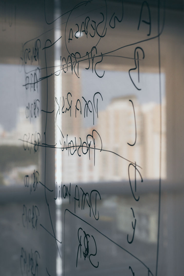 Nesse fundo de investimentos optamos por deixar a laje em concreto e toda iluminação aparente, diminuindo o custo e tempo de obra do projeto e ainda, deixou o ambiente um pouco mais descontraído.